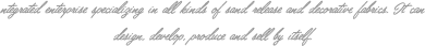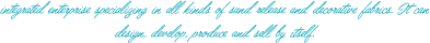 從事各類沙發(fā)布、裝飾布的工貿(mào)一體化企業(yè),可自行設(shè)計、開發(fā)、生產(chǎn)、銷售。